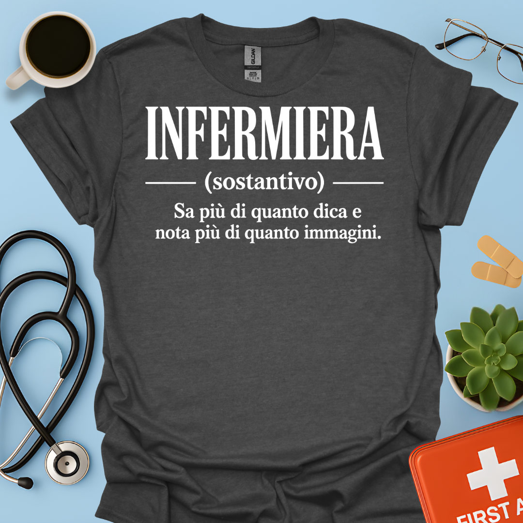 INFERMIERA : Sa più di quanto dica e nota più di quanto immagini Maglietta